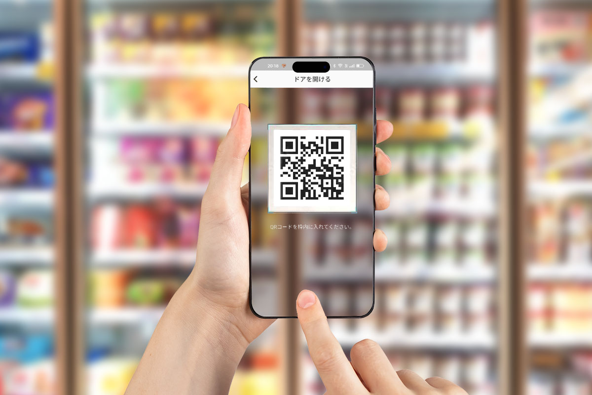「スマート販売機」アプリでQRコードを読み、商品を取り出して扉を閉めると自動で決済が完了。面倒な手続きは一切不要です!